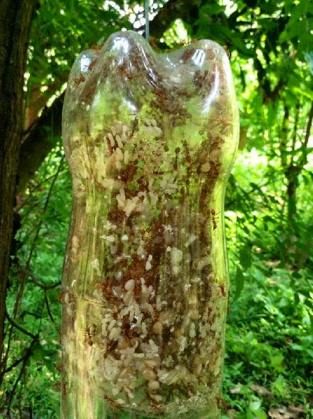 วิดีโอแสดงการเลี้ยงมดแดงในขวดพลาสติก หรือคอนโดมดแดงนั้นเอง..