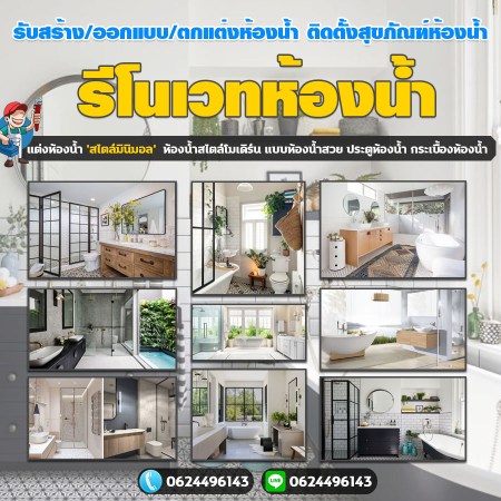 แบบห้องน้ำเขตดอนเมือง ติดตั้งสุขภัณฑ์ รับสร้าง ตกแต่งห้องน้ำ ประตูห้องน้ำ กระเบื้องห้องน้ำ